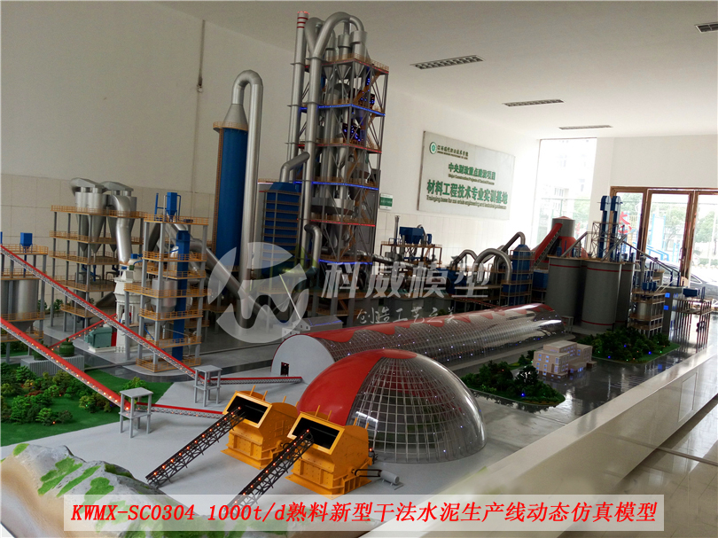 該模型根據客戶的需求,并參照新型干法水泥生產線廠區(qū)建筑總平面布置圖,按1:30(約)的模型比例微縮進行制作,模型可以完整顯示整個水泥生產線工藝流程,包括廠區(qū)環(huán)境以及工廠各單元生產設備的分布設施整體展現。